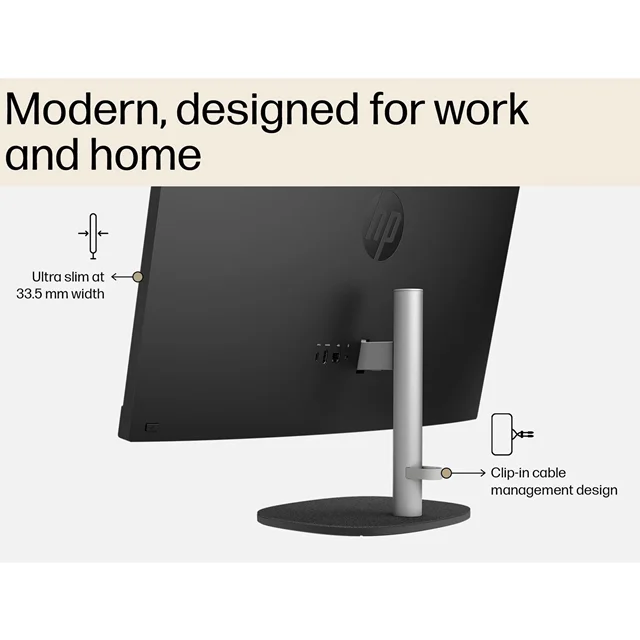 رایانه همهکاره HP 27-cr0155nh به یک نمایشگر ۲۷ اینچی مجهز شده که از نوع IPS و با رزولوشن Full HD (1920x1080 پیکسل) است. این صفحهنمایش لمسی بوده و امکان تعامل مستقیم با محتوا را فراهم میکند، خصوصاً برای کاربرانی که به طراحی گرافیکی سبک یا مرور آسانتر صفحات علاقه دارند. پنل استفادهشده در این نمایشگر، از نوع three-sided micro-edge است که باعث میشود حاشیههای اطراف صفحه بسیار نازک باشند و نسبت تصویر به بدنه به عدد چشمگیر ۹۸.۱۶٪ برسد. این طراحی نهتنها زیبایی بصری ایجاد میکند، بلکه فضای کاری گستردهتری نیز در اختیار کاربر قرار میدهد. همچنین پوشش مات ضد انعکاس نور در کنار روشنایی ۳۰۰ نیت کمک میکند تا حتی در محیطهای پرنور، محتوای تصویری بهخوبی قابل مشاهده باشد. پوشش رنگی ۹۹٪ sRGB دقت رنگ مطلوبی را ارائه میدهد و آن را برای کارهای گرافیکی سبک و طراحی دیجیتال اولیه نیز مناسب میسازد. زاویه دید گسترده ۱۷۸ درجهای پنل IPS نیز موجب میشود کیفیت تصویر از زوایای مختلف حفظ شود.